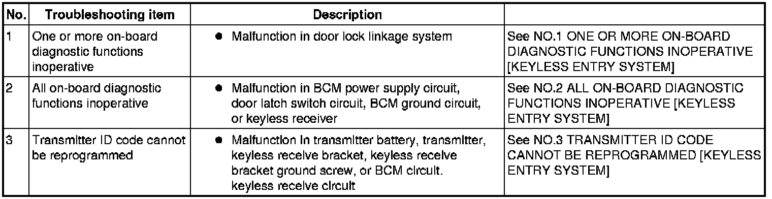 Symptom Troubleshooting Chart (Keyless Entry System):