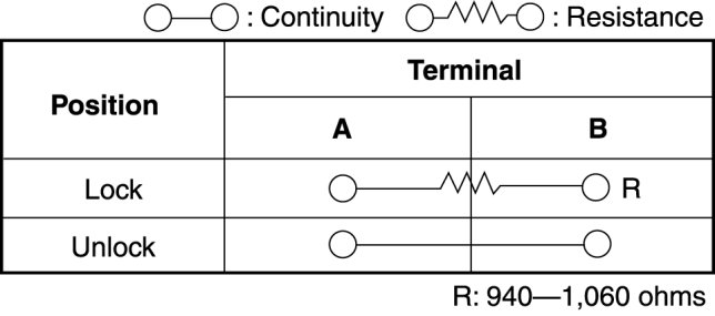 Inspect for continuity between the door lock switch terminals using an ohmmeter.