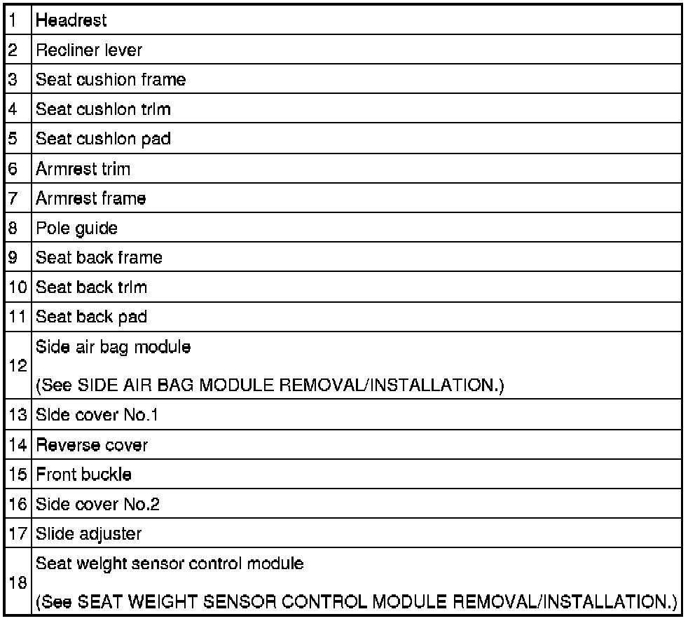 FRONT SEAT DISASSEMBLY/ASSEMBLY
