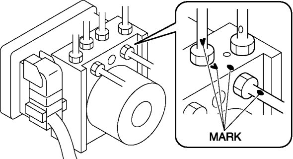 1. Place an alignment mark on the brake pipe and DSC HU/CM.