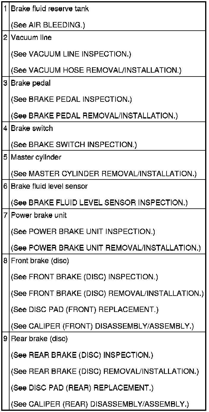 CONVENTIONAL BRAKE SYSTEM LOCATION INDEX