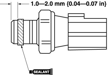 - Make sure that there is no sealant between 1.0-2.0 mm {0.04-0.07 in} from the end of the oil pressure switch to prevent a possible operation malfunction.