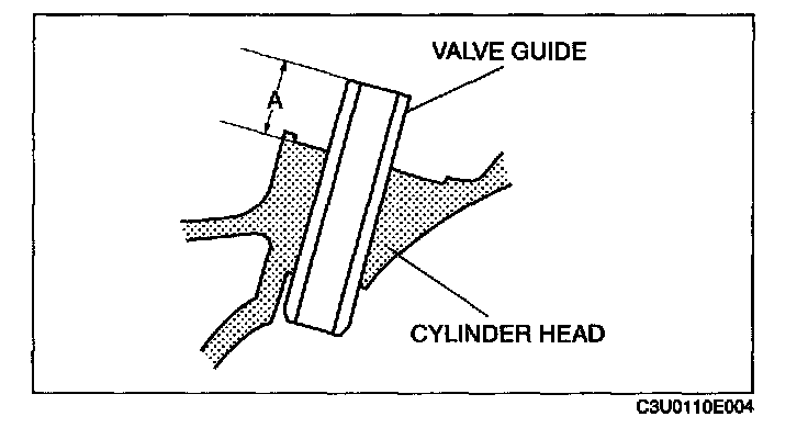 6. Measure the protrusion height (dimension A) of each valve guide without lower valve spring seat. If not within the specified, replace the valve guide.