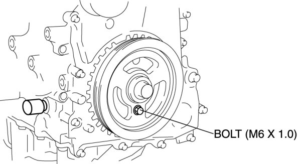 6. Remove the bolt (M6 X 1.0) installed to the crankshaft pulley.