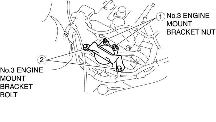 3. Tighten the No.3 engine mount bracket bolts and nuts in the order as shown in the figure.