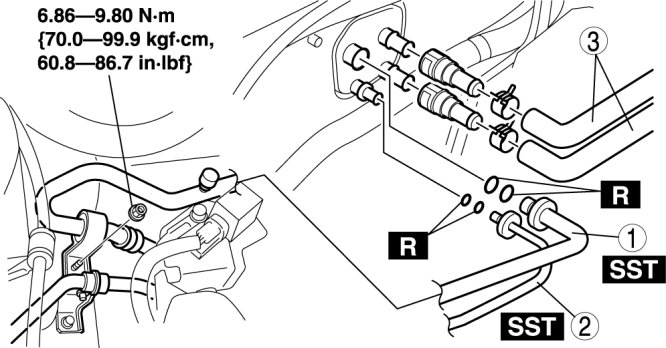 1. When replacing the A/C unit or evaporator, add compressor oil to the refrigerant cycle.
