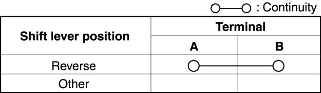 Verify that the continuity between the back-up light switch terminals is as indicated in the table.