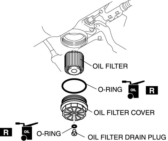8. Apply clean oil to a new O-ring of the oil filter cover.