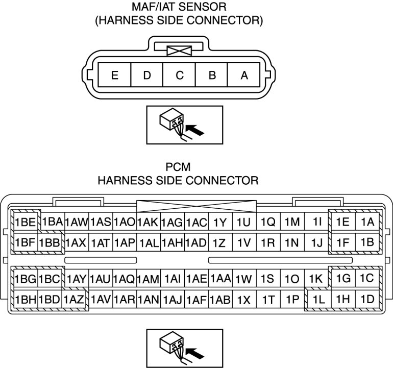 - MAF/IAT sensor terminal E and PCM terminal 1AV
