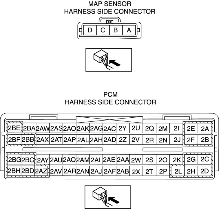 - MAP sensor terminal D and PCM terminal 2AG