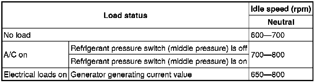 - Excludes temporary idle speed drop just after the loads are turned on.