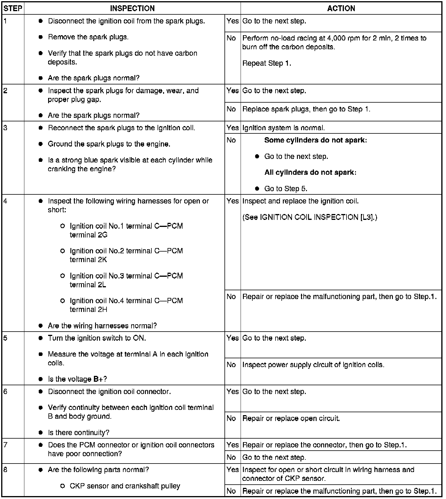 - High voltage in the ignition system can cause strong electrical shock which can result in serious injury. Avoid direct contact to the vehicle body during the following spark test.