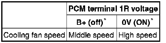 - Fan control signal circuit (between fan control module terminal B and PCM terminal 1R)