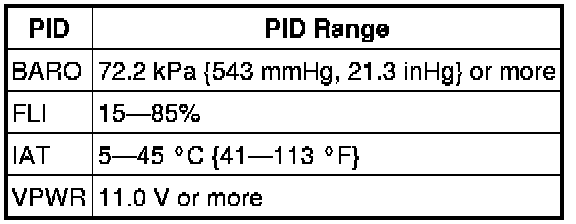 - To successfully perform this procedure, all PIDs must be within the following specifications before proceeding to the next step.