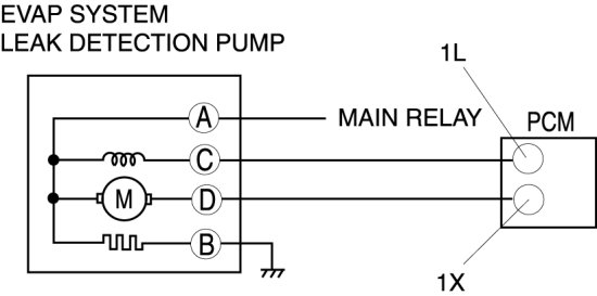 - EVAP system leak detection pump terminal D and PCM terminal 1X