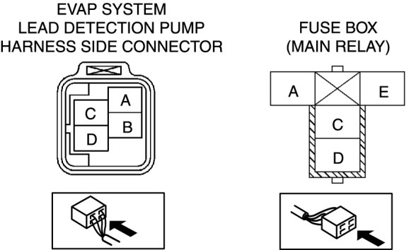 - EVAP system leak detection pump terminal A and main relay terminal C