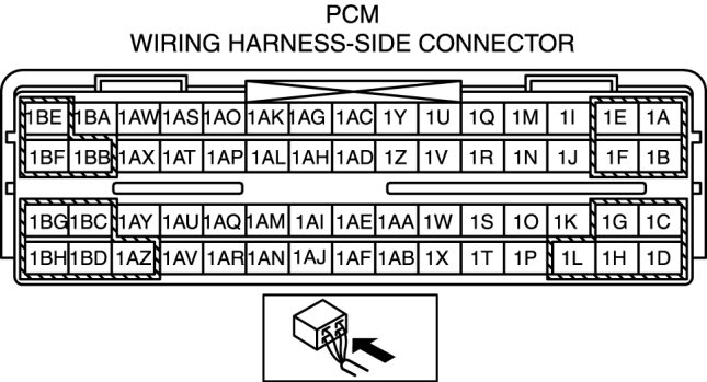 8. Ground the following PCM terminal 1BG using a jumper wire.