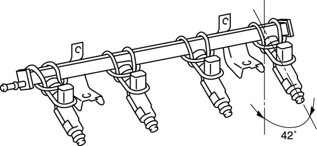 10. Tilt the fuel injector at an angle of 42° to inspect for leakage.