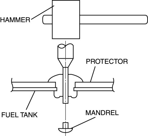 - Be careful not to damage the fuel tank when removing the rivet. If the fuel tank is damaged, it may cause fuel leakage.