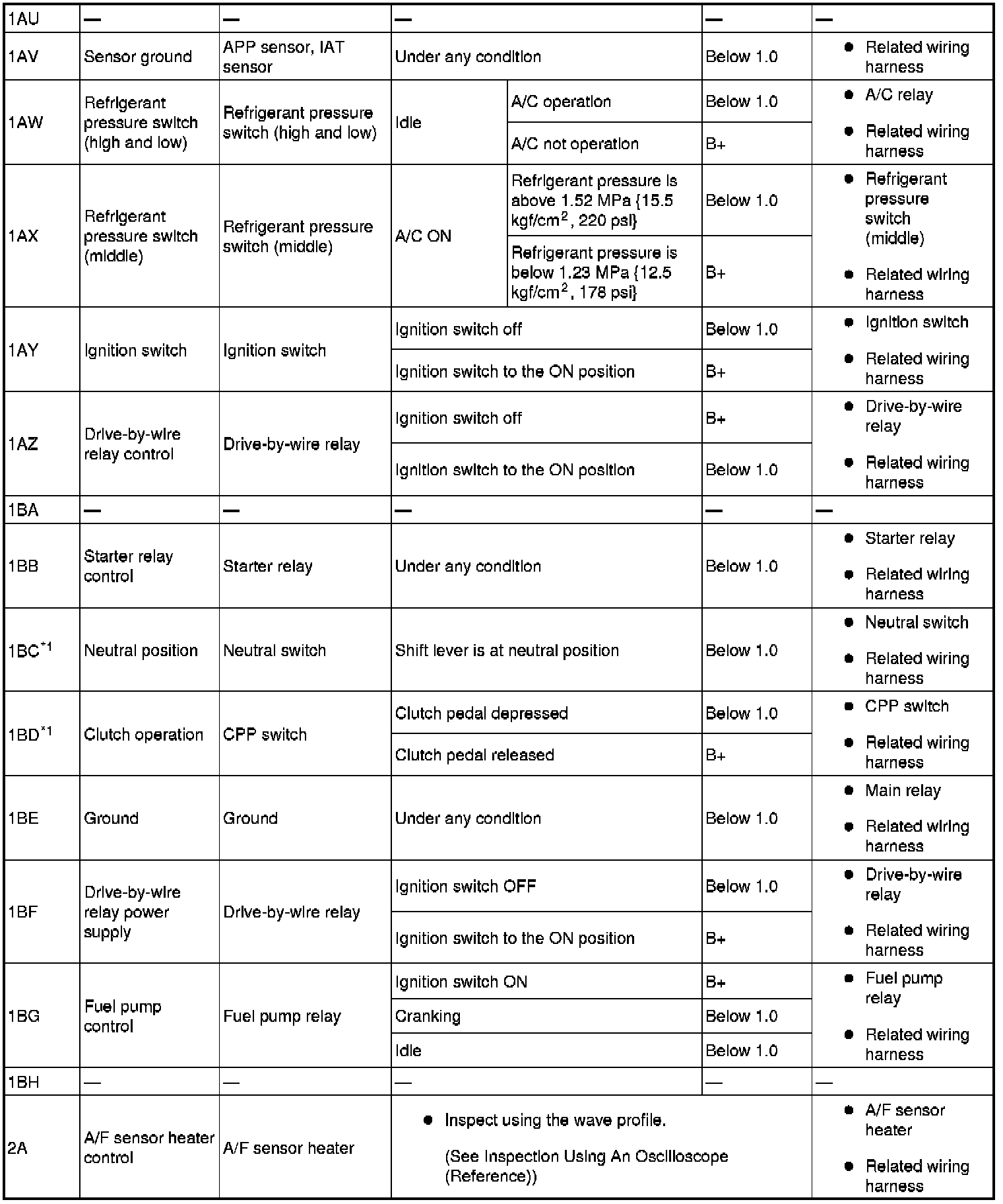 - The PCM terminal voltage can vary with the conditions when measuring and changes due to aged deterioration on the vehicle, causing false diagnosis. Therefore determine comprehensively where the malfunction occurs among the input systems, output systems, and the PCM.