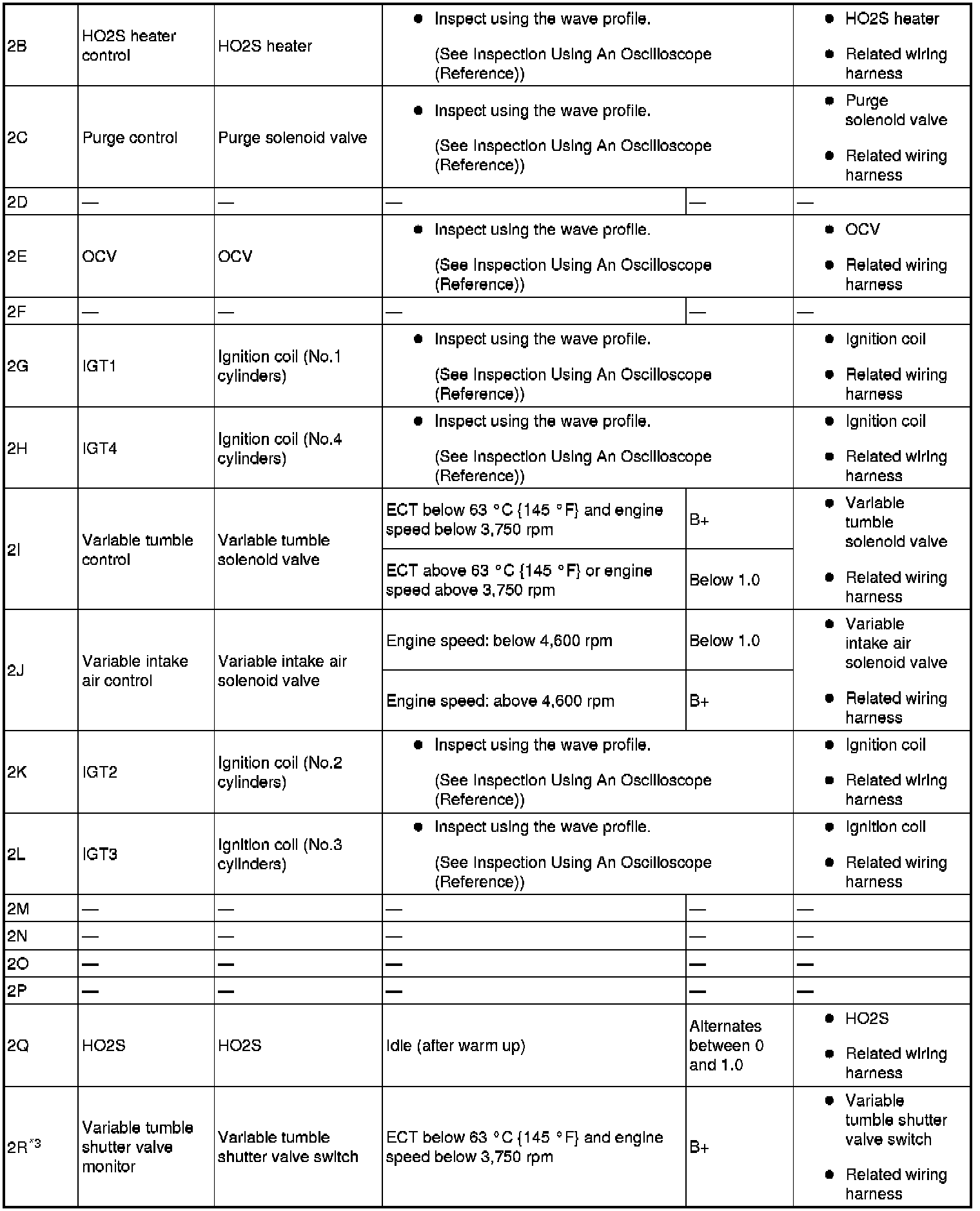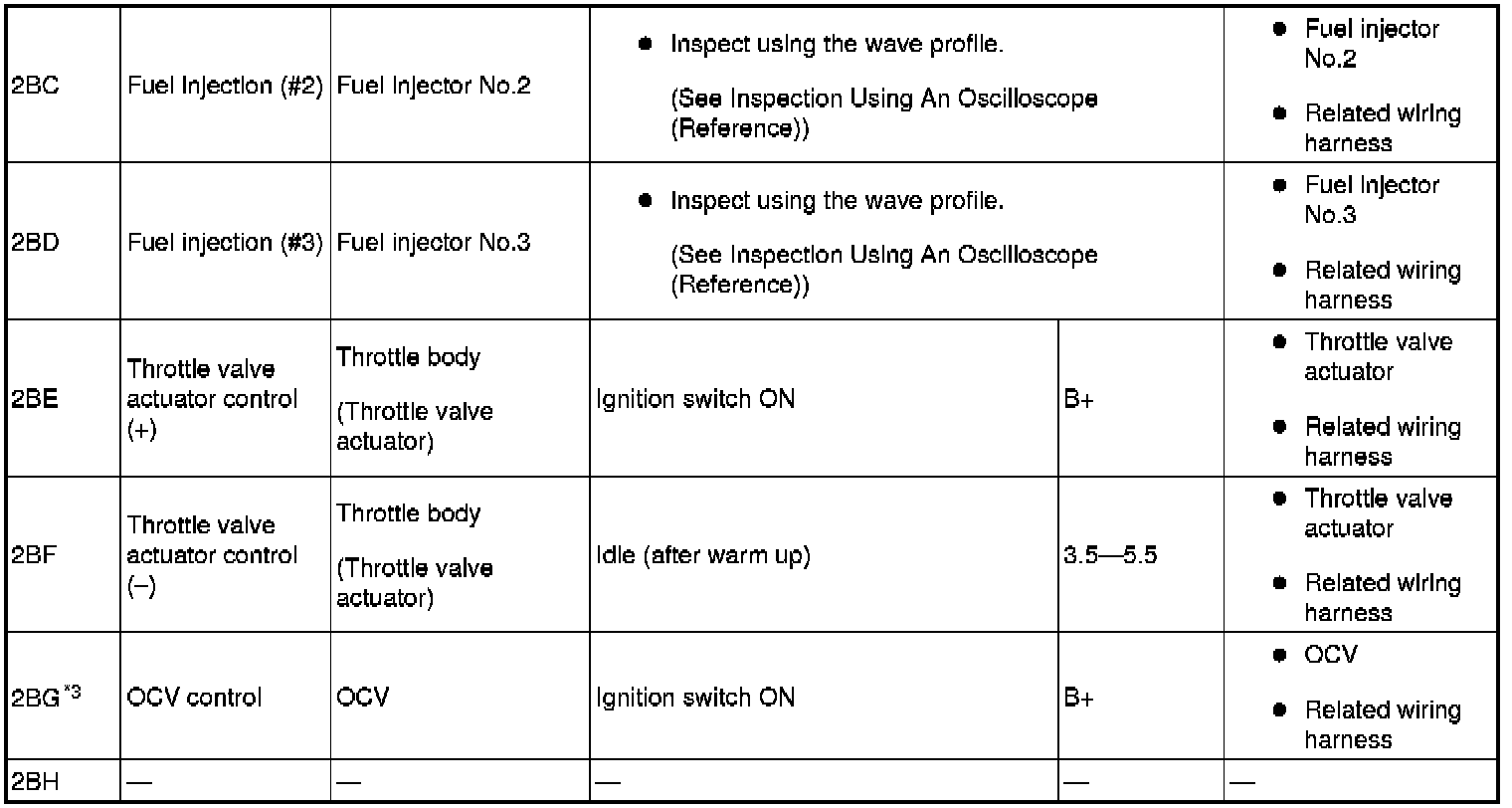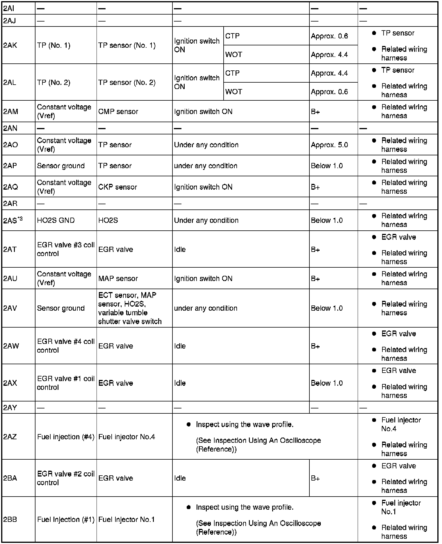 - Fuel Injection No.2: 2BC (+)-body ground (-)