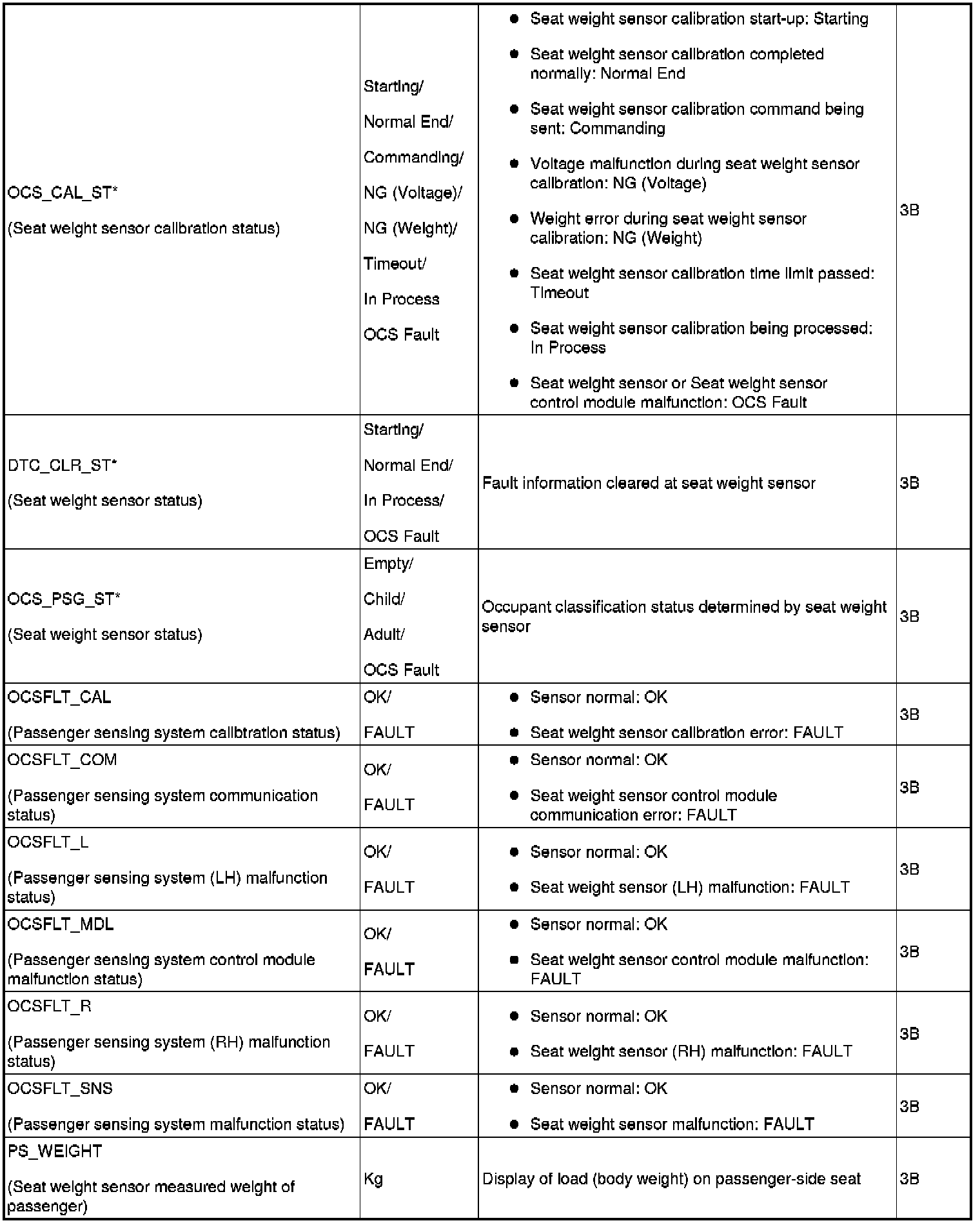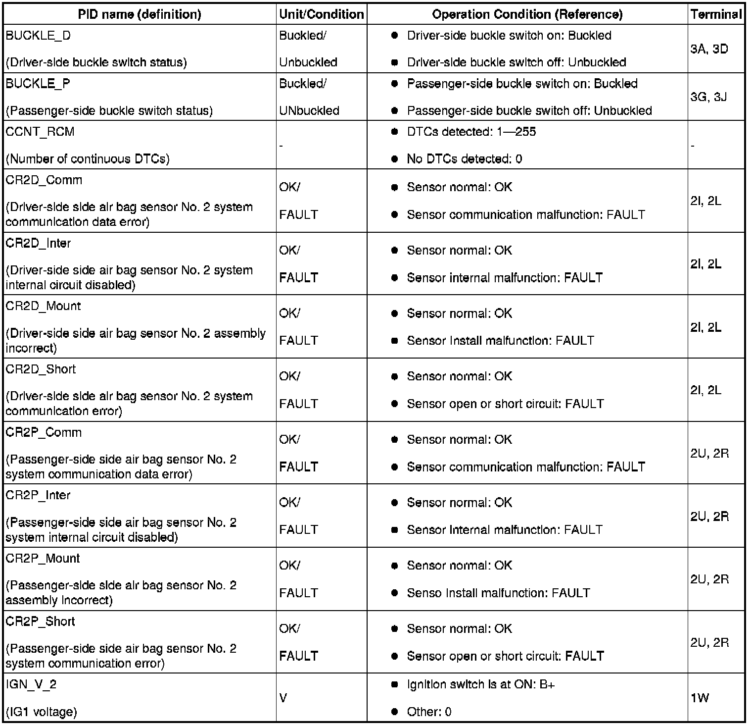 PID/DATA MONITOR TABLE