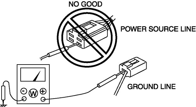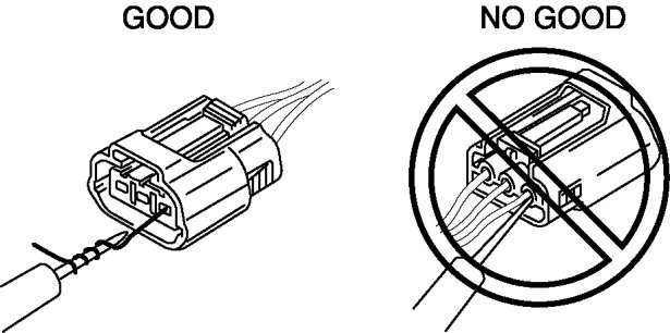 - To prevent damage to the terminal, wrap a thin wire around the tester probe before inserting into terminal.