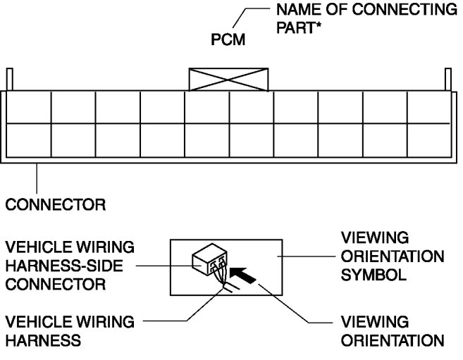 The viewing orientation for vehicle wiring harness-side connectors is from the wiring harness side.