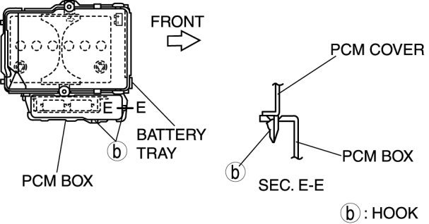 1. Install with the PCM cover hooks B aligned with the PCM box holes at two points.