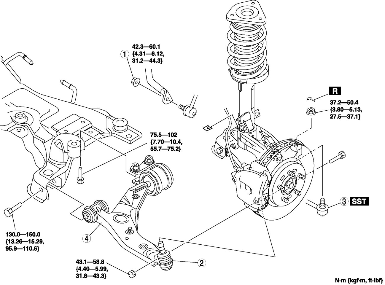 - 93.1-116.6 Nm {9.50-11.88 kgf-m, 68.67-85.99 ft-lbf}