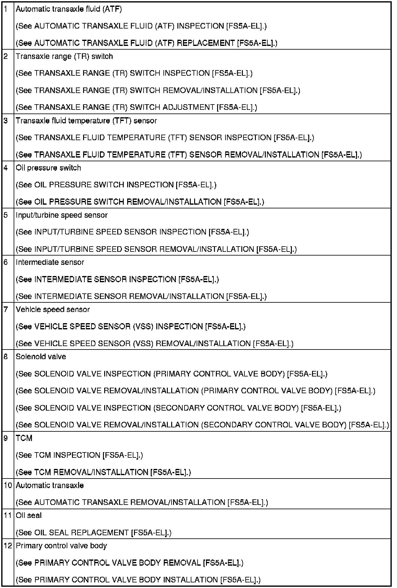 AUTOMATIC TRANSAXLE LOCATION INDEX [FS5A-EL]