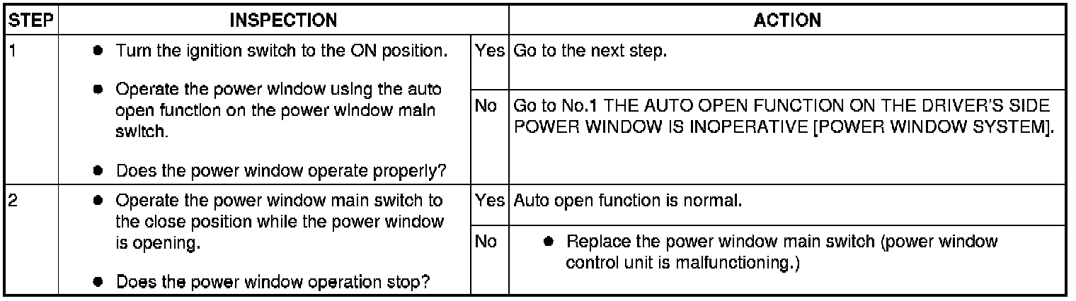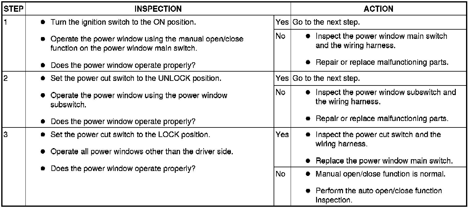POWER WINDOW SYSTEM PRELIMINARY INSPECTION [POWER WINDOW SYSTEM]