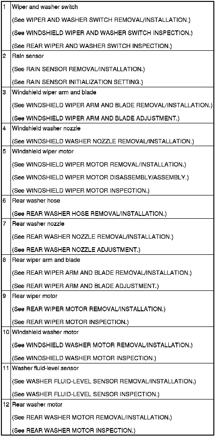 WIPER/WASHER SYSTEM LOCATION INDEX