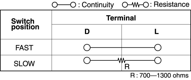 - If not as indicated in the table, replace the windshield wiper and washer switch.