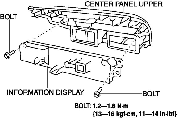 3. Remove the bolts, then remove the information display from the center panel upper.