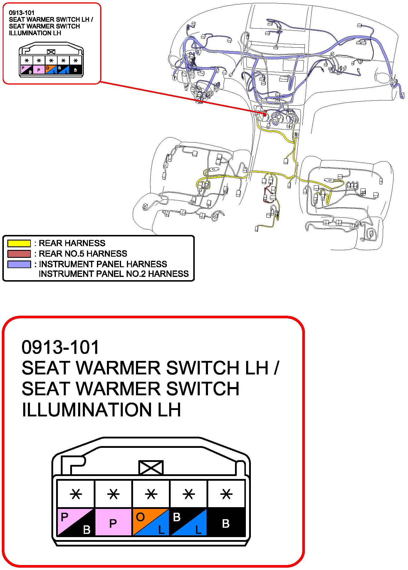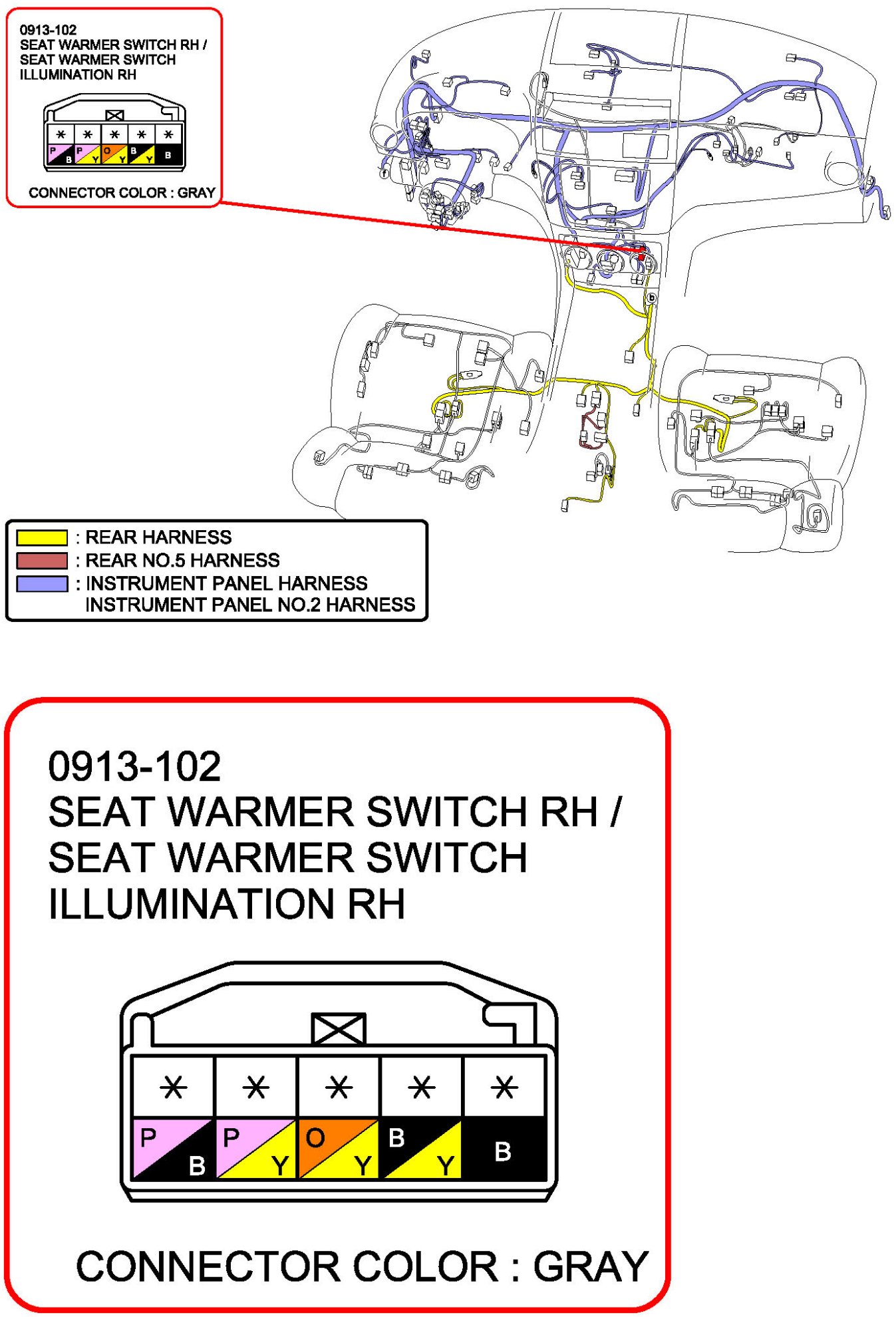 Seat Warmer Switch RH/Seat Warmer Switch Illumination RH: