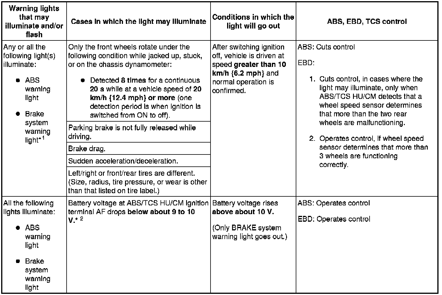 In cases where the light may illuminate, only when ABS/TCS HU/CM detects that a rear wheel's speed sensor is malfunctioning.