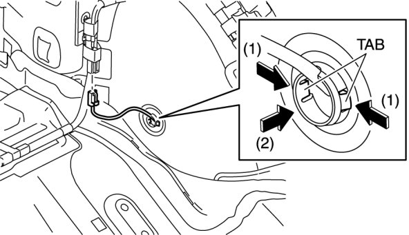 6. Press the rear ABS wheel-speed sensor tabs and press out the sensor toward the outside of the vehicle.