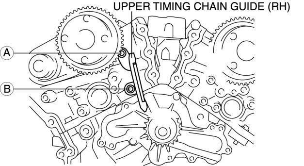 2. Remove the upper timing chain guide (RH) bolt B.