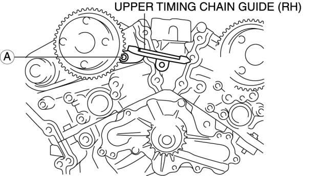1. Loosen the upper timing chain guide (RH) bolt A.
