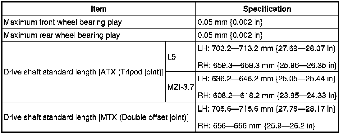 DRIVELINE/AXLE TECHNICAL DATA