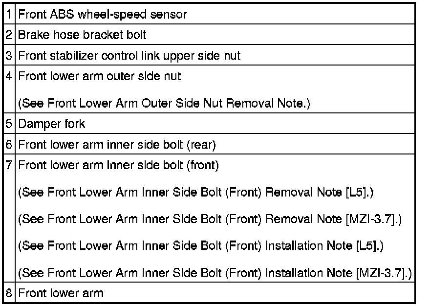 Front Lower Arm Inner Side Bolt (Front) Removal Note [MZI-3.7]