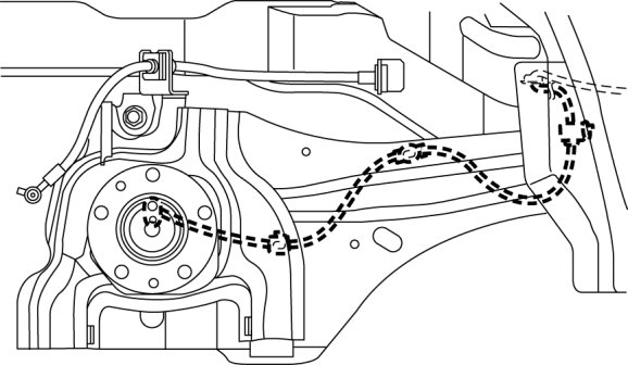 - Performing the following procedures without first removing the ABS wheel-speed sensor may possibly cause an open circuit in the harness if it is pulled by mistake. Before performing the following procedures, remove the ABS wheel-speed sensor (axle side) and fix it to an appropriate place where the sensor will not be pulled by mistake while servicing the vehicle.