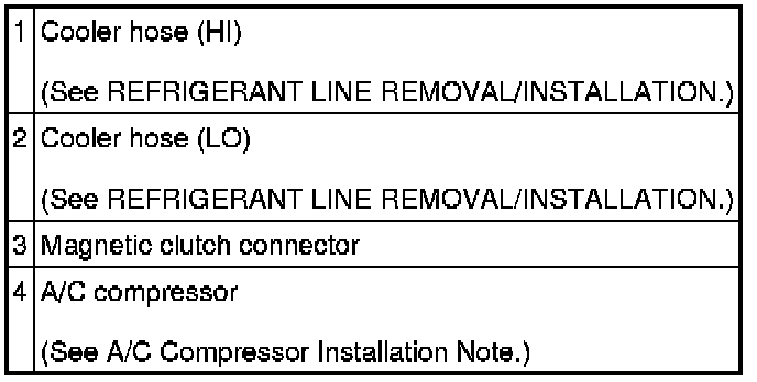 5. Remove in the order indicated in the table. Do not allow compressor oil to spill.