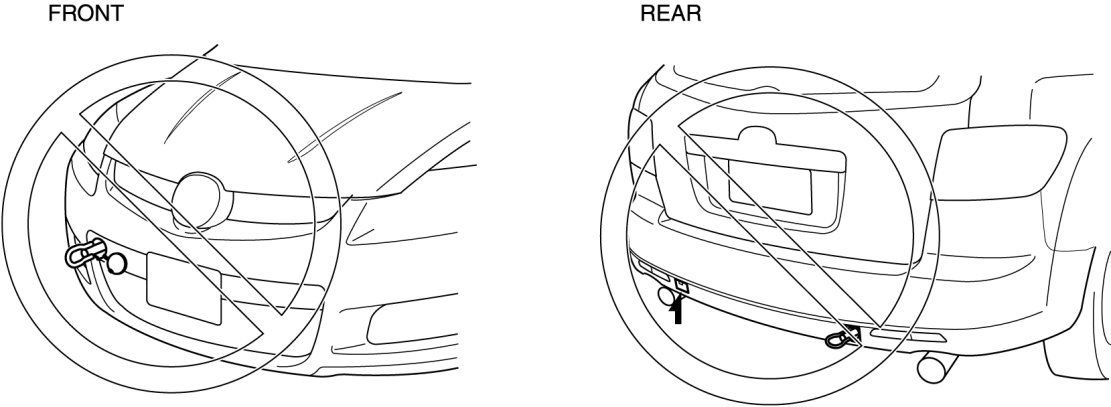 - To prevent damage to the vehicle, do not use the Tie-down eyelet (front) and the left/right Tie-down eyelet (rear) for towing the vehicle using another vehicle.