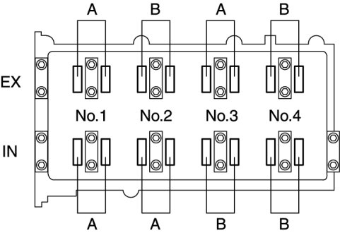 e. Measure the valve clearance of location B shown in the figure.