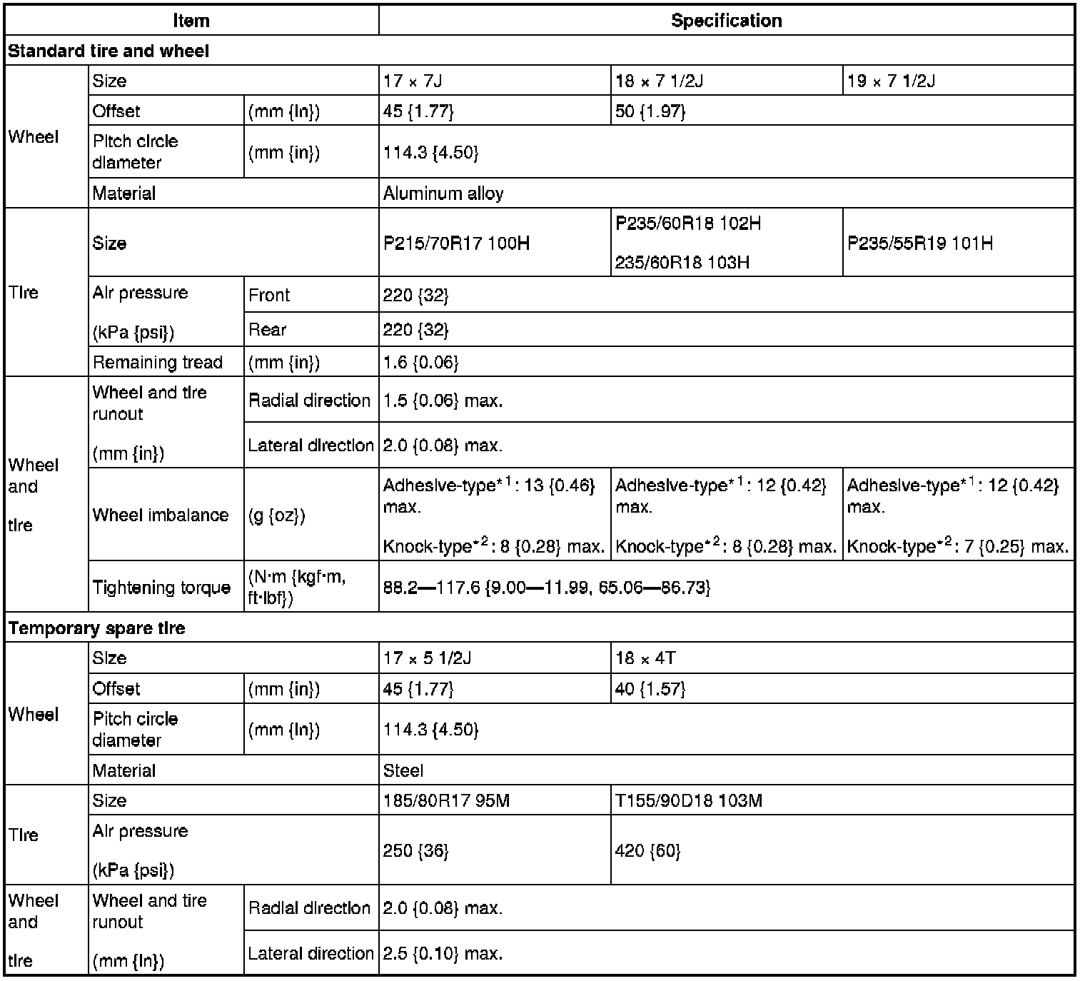 One balance weight: 60 g {2.12 oz} max. If the total weight exceeds 100 g {3.53 oz} on one side, rebalance after moving the tire around on the rim. Do not use three or more balance weights.