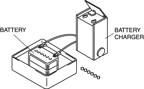 - Keep all flames away from the battery, otherwise evaporated gas from the battery fluid may catch fire, and cause serious injury.