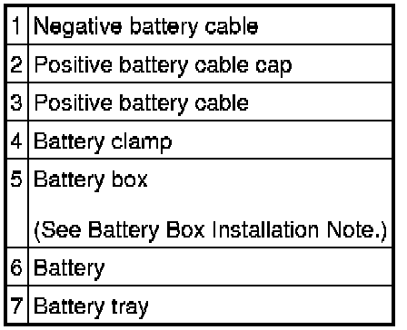 1. Install the battery box so that the side with the notch points toward the front fender (LH).