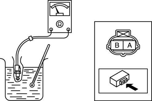 3. Wrap the differential oil temperature sensor with plastic wrap and immerse it into a beaker filled with water. Gradually raise the water temperature, and measure resistance between differential oil temperature sensor terminals A and B.